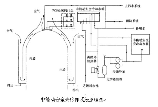 ??? 第三代核電技術(shù)通過采用非能動安全系統(tǒng)或增加安全系統(tǒng)冗余度、增設(shè)緩解嚴(yán)重事故后果的工程措施以及應(yīng)用數(shù)字化儀控系統(tǒng)等先進(jìn)技術(shù),降低核電站的嚴(yán)重事故風(fēng)險,實(shí)現(xiàn)更高的安全目標(biāo),主要以美國西屋公司開發(fā)的先進(jìn)壓水堆(AP1000)和法德兩國聯(lián)合開發(fā)的歐洲壓水堆(EPR)為典型代表。 一、AP1000安全系統(tǒng)組成及特點(diǎn) AP1000安全系統(tǒng)主要由非能動堆芯冷卻系統(tǒng)、非能動安全殼冷卻系統(tǒng)、裂變產(chǎn)物排出與控制系統(tǒng)、安全殼隔離系統(tǒng)和主控制室應(yīng)急可居留系統(tǒng)組成。 1.AP1000非能動堆芯冷卻系統(tǒng)。該系統(tǒng)為可能發(fā)生的事故提供堆芯應(yīng)急冷卻能力,主要由余熱排出子系統(tǒng)、安注子系統(tǒng)和安全殼內(nèi)PH控制子系統(tǒng)組成,主要包括一個非能動余熱導(dǎo)出熱交換器、兩個堆芯補(bǔ)水箱、兩個安注箱、一個PH調(diào)整化學(xué)藥品的籃筐和一個安全殼內(nèi)換料水箱,以及相關(guān)的閥門、管道和儀表,這些設(shè)備均被設(shè)置在鋼制安全殼內(nèi)部。本系統(tǒng)在功能設(shè)計上與傳統(tǒng)壓水堆類似,主要也是在發(fā)生LOCA事故、彈棒事故、二回路主給水或主蒸汽管道破裂等設(shè)計基準(zhǔn)事故時為一回路提供硼化和冷卻。 2.AP1000非能動安全殼冷卻系統(tǒng)。其作用是發(fā)生破口事故或主蒸汽管破裂事故發(fā)生在安全殼內(nèi)時,排出安全殼內(nèi)的熱量。主要是以鋼安全殼作為傳熱界面,將空氣從外層屏蔽殼入口引入,通過外部環(huán)廊到達(dá)底部,在空氣折流板底部轉(zhuǎn)向180°,進(jìn)入內(nèi)部環(huán)廊,再沿安全殼內(nèi)壁向上流動。由于內(nèi)部環(huán)廊空氣被加熱以及水蒸氣的存在,內(nèi)、外環(huán)廊的空氣存在密度差,形成空氣的自然循環(huán),空氣最終從屏蔽殼頂部煙囪排出。在安全殼頂部設(shè)有可供使用72小時的冷卻水貯存箱,水依靠重力向下流,在鋼安全殼弧頂和殼壁外側(cè)形成一層水膜。當(dāng)安全殼內(nèi)壓力或溫度過高時,系統(tǒng)自動開啟。由水膜和空氣的自然循環(huán)導(dǎo)出安全殼內(nèi)的熱量,降低安全殼的壓力,保證安全殼不受損壞。