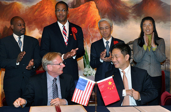 ????11月6日上午,國(guó)家能源局副局長(zhǎng)張玉清于北京會(huì)見(jiàn)了美國(guó)能源部副助理部長(zhǎng)克里斯托弗?史密斯,就中美頁(yè)巖氣合作進(jìn)行了簡(jiǎn)短交談,并共同出席見(jiàn)證了《中國(guó)國(guó)家能源局與美國(guó)貿(mào)易發(fā)展署關(guān)于頁(yè)巖氣技術(shù)培訓(xùn)項(xiàng)目的諒解備忘錄》簽約儀式,我局油氣司楊雷副司長(zhǎng)作為授權(quán)代表與美國(guó)貿(mào)發(fā)署東亞區(qū)主任杰弗里?杰克遜共同簽署了諒解備忘錄。 |