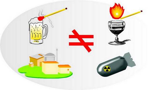 ????雖然核彈和核反應堆都以鈾為原料,但兩者對純度要求完全不同:核彈要求鈾純度在90%以上,而核電站核燃料鈾純度只有3%左右,如此低的濃度根本不能發生爆炸,正如烈度白酒可以點燃,啤酒卻不能點燃的道理一樣。核電站50多年的發展歷史上,從未發生過核爆炸:切爾諾貝利核事故是蒸汽爆炸,日本福島第一核電站是氫氣爆炸,都不是核爆炸。