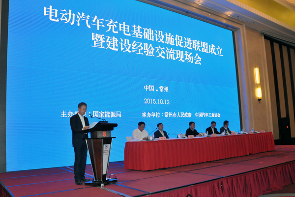 ??? 為落實(shí)9月23日、9月29日的第106次和107次國(guó)務(wù)院常務(wù)會(huì)議關(guān)于加快電動(dòng)汽車充電基礎(chǔ)設(shè)施建設(shè)的有關(guān)部署,成立充電基礎(chǔ)設(shè)施促進(jìn)聯(lián)盟,交流建設(shè)經(jīng)驗(yàn),推動(dòng)全國(guó)充電基礎(chǔ)設(shè)施加快建設(shè),國(guó)家能源局于10月12日在常州召開(kāi)全國(guó)新能源汽車充電基礎(chǔ)設(shè)施建設(shè)現(xiàn)場(chǎng)會(huì)。圖為國(guó)家電網(wǎng)公司副總經(jīng)理?xiàng)顟c發(fā)言。周柏豫攝 |
