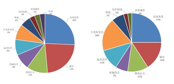 圖1:各類別人身傷亡事故起數(shù)占比(左)和各類別人身傷亡事故人數(shù)占比(右) (二)按事故原因統(tǒng)計 2020年,人的不安全行為造成22起事故31人死亡,物的不安全狀態(tài)造成13起事故13人死亡。