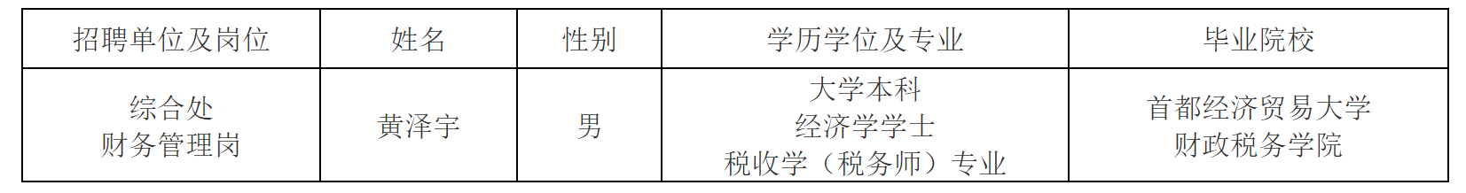 根據(jù)事業(yè)單位公開招聘有關(guān)規(guī)定,現(xiàn)將我單位公開招聘擬聘用事業(yè)單位工作人員予以公示。公示期間,如有問題,請向我單位反映,或直接通過中央和國家機關(guān)所屬事業(yè)單位公開招聘服務(wù)平臺反映。