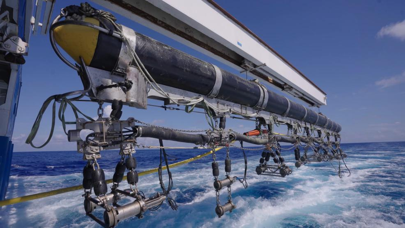 深水導管架“海基二號” 我國自主研發的海洋地震勘探拖攬采集裝備“海經”系統,順利完成3000米以深超深水海域油氣勘探作業,通過現場數據處理,成功完成首張由我國自主裝備測繪的3000米深水三維地質勘探圖,使我國成為全球第三個掌握全套海洋地震勘探拖纜采集裝備的國家。