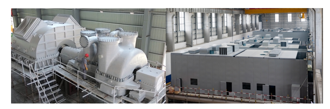 完成單位:中煤集團 九、300兆瓦壓縮空氣儲能系統壓縮機和膨脹機 壓縮空氣儲能是大規模、長壽命、高安全的新型儲能技術,應用前景廣闊。壓縮機和膨脹機是壓縮空氣儲能系統中的關鍵核心技術裝備。該項成果突破了300兆瓦先進壓縮空氣儲能系統壓縮機、膨脹機全套關鍵核心技術,研制出300兆瓦級“軸流+離心”壓縮機、300兆瓦級大流量多級寬負荷膨脹機。成果應用于湖北應城和山東肥城壓縮空氣儲能電站項目,推動我國先進壓縮空氣儲能技術邁向新的臺階。