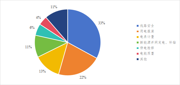 2025年5月,12398能源监管热线平台接收投诉1736件。从投诉内容看,电力领域1573件,新能源领域163件。从被投诉对象看,国家电网公司1275件,南方电网公司348件,内蒙古电力集团27件,其他电力企业80件,增量配电企业6件。从投诉类别看,主要集中在用电报装、停电抢修、电表计量等方面。